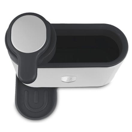 Praktični dozirnik za detergent z držalom za gobico 2v1 bo ohranil območje okoli pomivalnega korita čisto in urejeno. Vgrajeno stojalo za gobico s pladnjem za kapljanje bo lovilo odvečno vodo in preprečevalo nered na pultu. Gladko tekoč dozirnik s črpalko omogoča natančno doziranje detergenta, zaradi enostavnega polnjenja pa je uporaba hitra in priročna. Mat antracitna površina je odporna na prstne odtise in se prilega sodobni kuhinji.