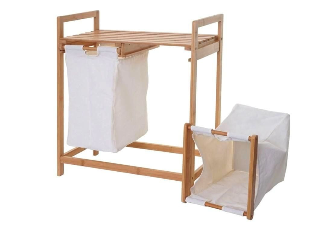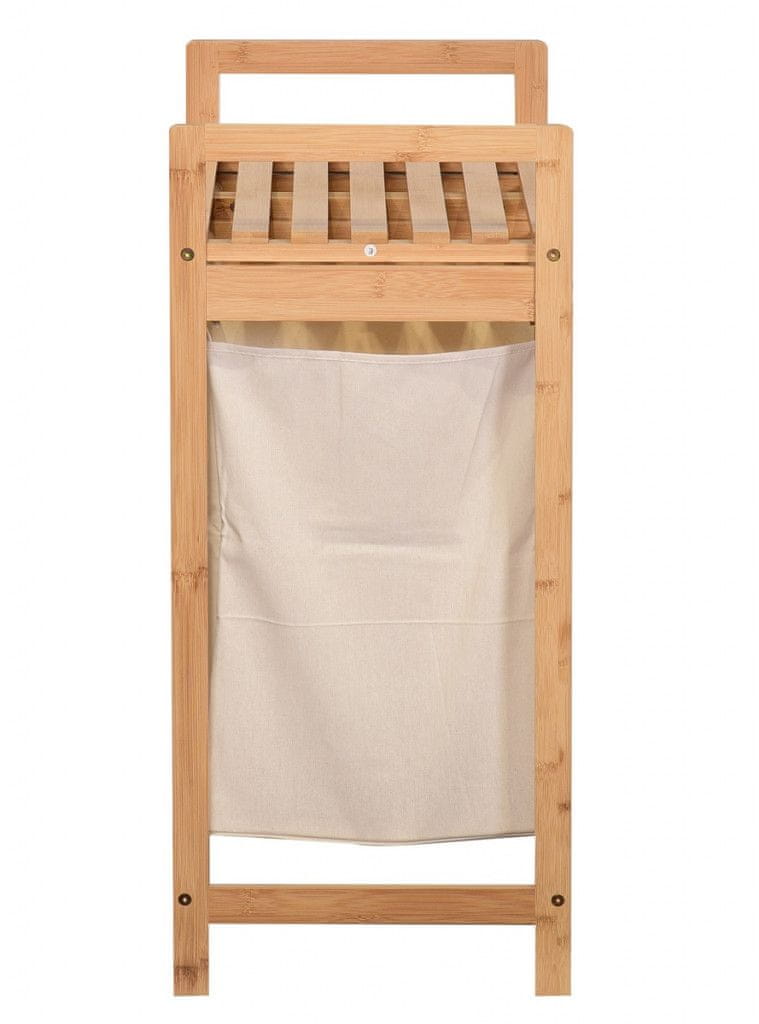 Košara za perilo je izdelana iz naravnega bambusa in ima dve odstranljivi vrečki za perilo iz blaga. Prostornina košare je približno 35 l, največja nosilnost zgornje plošče pa je 15,5 kg. Dostavljamo razstavljeno.