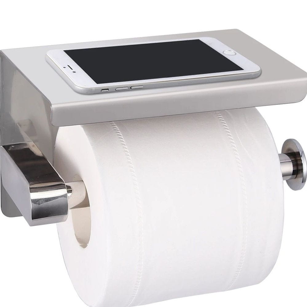 Odpri Nosilec toaletnega papirja s polico za telefon in druge kopalniške potrebščine. Poskrbel bo, da bodo najpomembnejše stvari vedno na dosegu roke. Ne zavzame veliko prostora in združuje dve funkciji. Celoten opis
