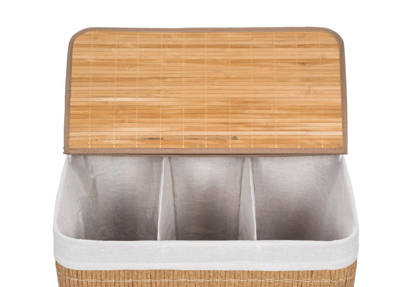 Koš za perilo iz ratana G21 PE z strong pokrovom ima pralno podlogo iz tkanine, razdeljeno na tri separatne predele. Tako lahko umazano perilo pred pranjem razvrstite in dele perila ločeno postavite po materialu ali barvi.