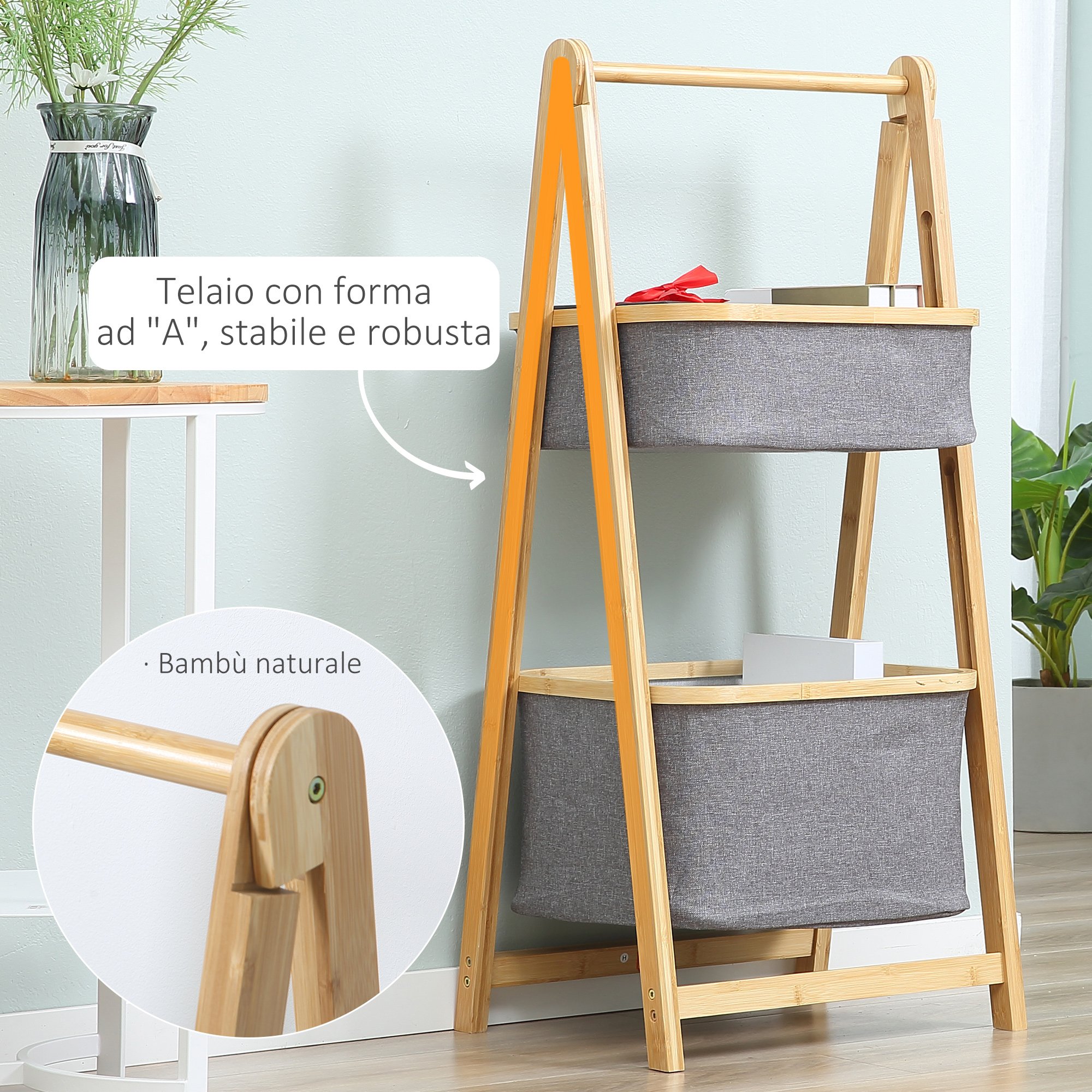Oblikovalski materiali: Ta polica je narejena iz bambusa in ima 2 predala v sivi tkanini z različnimi velikostmi. 2 predala: Ta sodobna polica ima 2 predala s tkanino, ki ju lahko uporabite za ohranjanje oblačil in kopalniških dodatkov v redu. Zložljivo in shranjevanje: Zahvaljujoč zložljivemu dizajnu lahko to shranjevalno polico odprete za shranjevanje predmetov in, ko ga ne potrebujete, jo lahko zaprete v majhnem prostoru. Ko je zložen, zaseda le 6 cm. Multiuse: Minimalist Style Design združuje estetsko in funkcionalnost ter odlično združuje s pohištvom spalnice, kopalnice, pralnice, vhoda, dnevne sobe in drugih sob. Dimenzije: Skupna velikost: 45L x 35p x 98ACM. Dimenzije Dimenzije: 38L x 30,5p x 14ACM, 38L x 30,5p x 22cm. Potrebna skupščina. Imate majhno hišo? Izkoristite prostor do maksimuma in s tem pohištvom Homcom ustvari funkcionalno okolje. Kot nalašč je za opremljanje kopalnice, pralnice ali sobe na praktičen način, vendar brez žrtvovanja