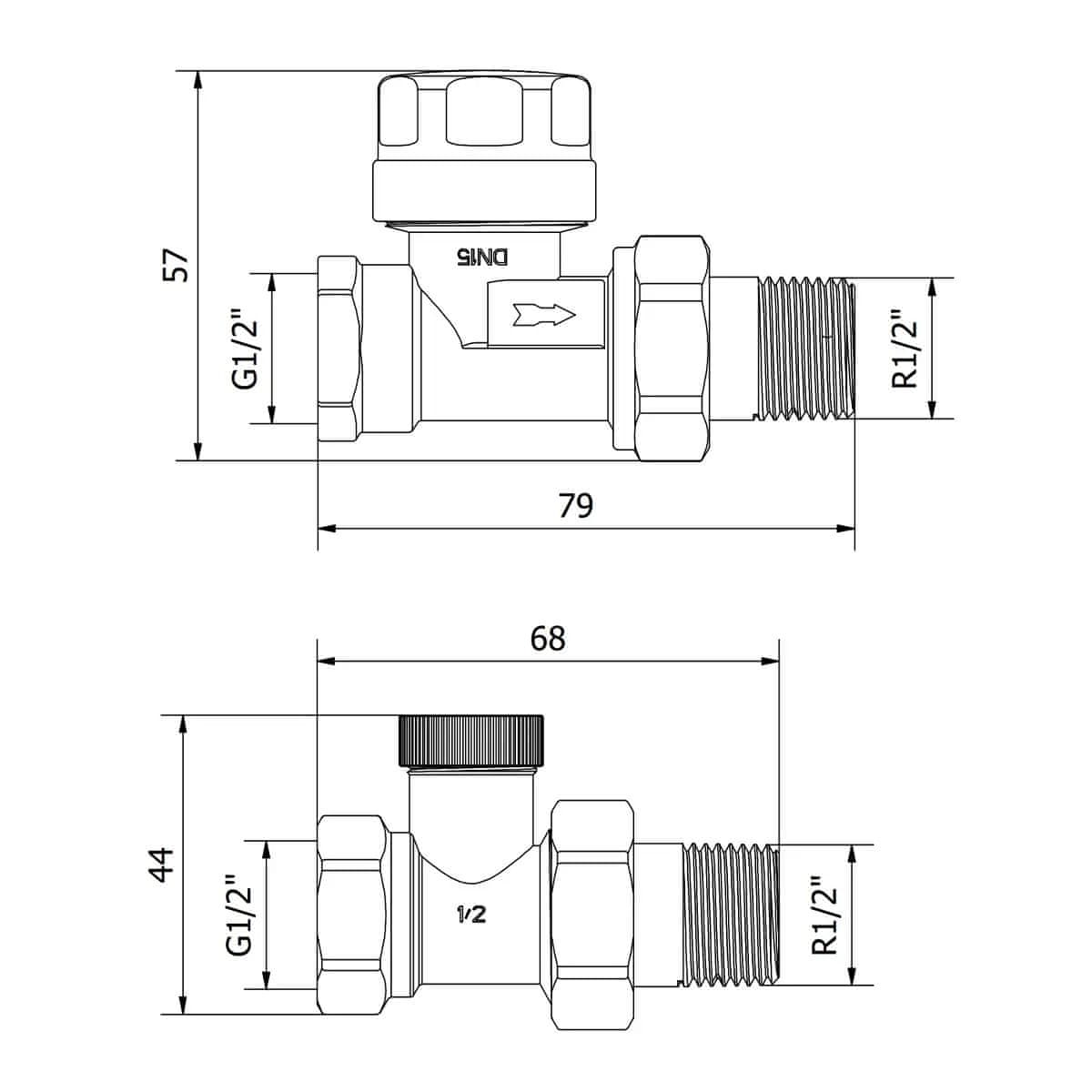 Termostatski ravni ventil je izdelan iz trpežne medenine, kar zagotavlja dolgo življenjsko dobo in zanesljivo delovanje.