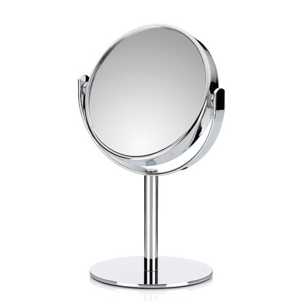 • Elegantno in navzven preprosto, okroglo kromirano ogledalo – ogledalo je dvostransko, ena stran ima 10-kratno povečevalno vrednost – barva: sijoča ??srebrna – material: jeklo s kromiranim.