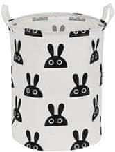 Zaradi svoje klasične in moderne zasnove v črni in beli barvi se torba prilega vsakemu interierju.Notranjost je prevlečena z vodoodpornim materialom, kar pomeni, da lahko vanjo shranimo mokra oblačila brez tveganja, da bi umazali zunanjo stran materiala.Košara ima dva praktična ročaja za prenašanje, pa tudi za obešanje na steno, npr.