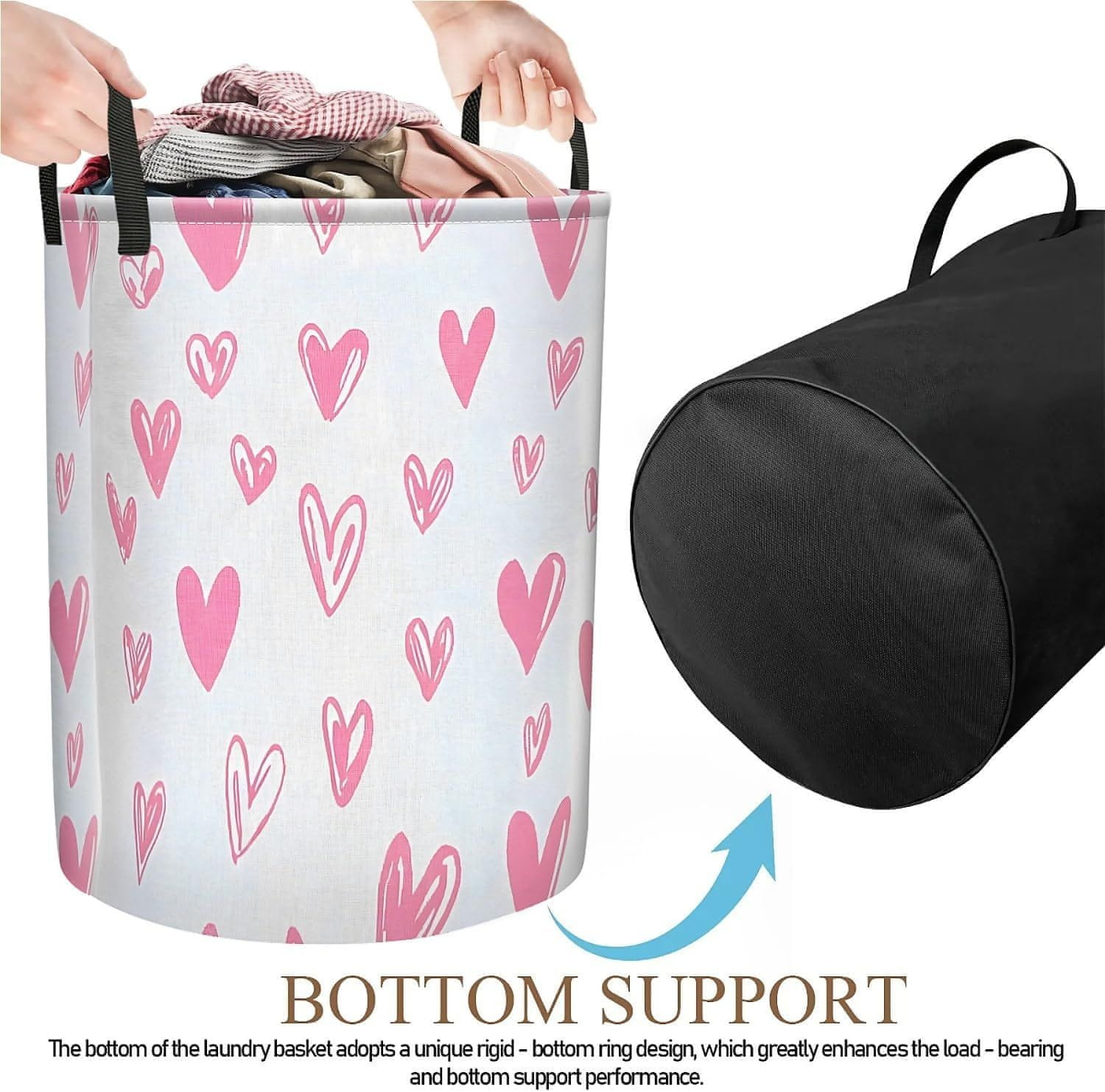 Zložljiva košara za perilo 40×50 cm Vreča Organizator za igrače Bela s srčki