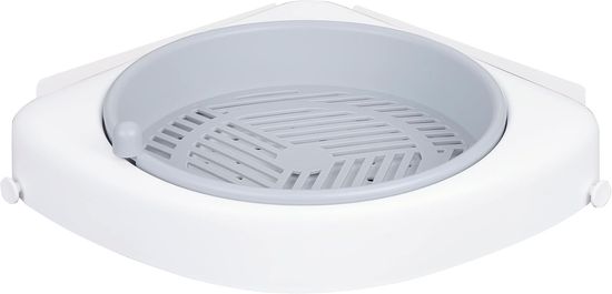 Nikcorp Kotna kopalniška polica s priseski brez vrtanja, stenski organizator za tuš, nosilnost 10 kg, bela, 32x25 cm
