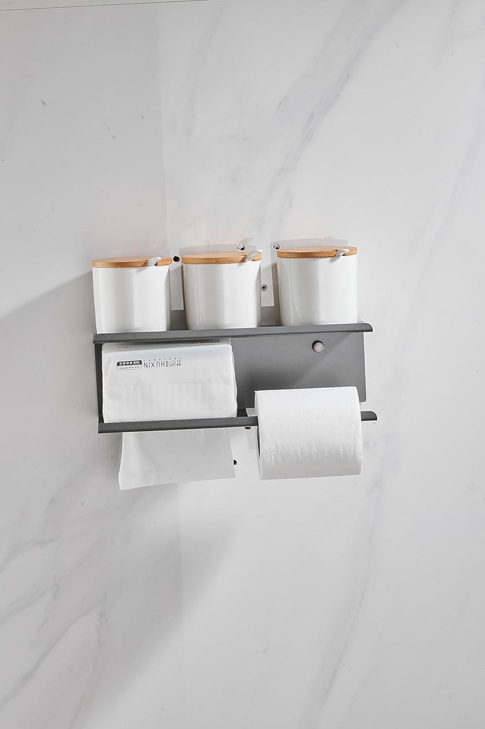 Nikcorp Samolepilno držalo za toaletni papir s polico 30 cm, stenski nosilec za WC papir, nerjaveče jeklo, črno