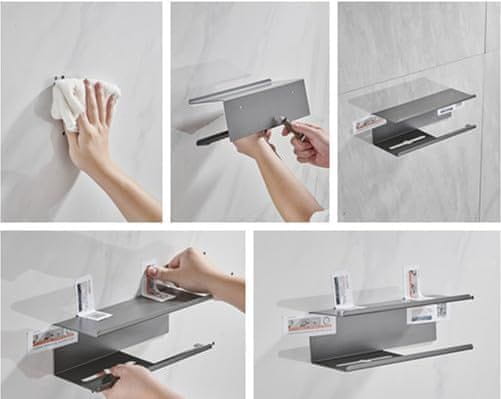 - Montaža: Brez vrtanja, samolepilna ali z vijaki