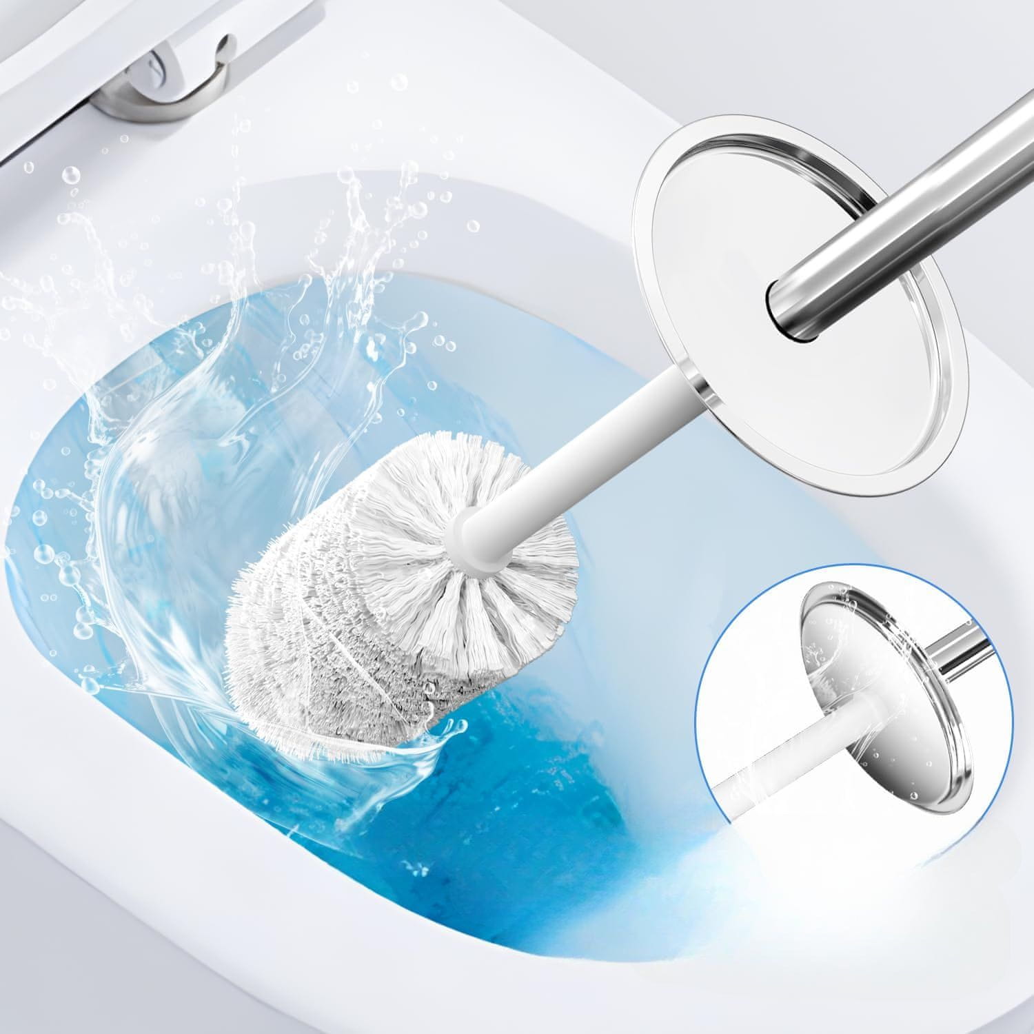 - Učinkovita čistilna glava: Vlakna učinkovito odstranjujejo umazanijo in zagotavljajo higienično čistočo površine WC školjke.