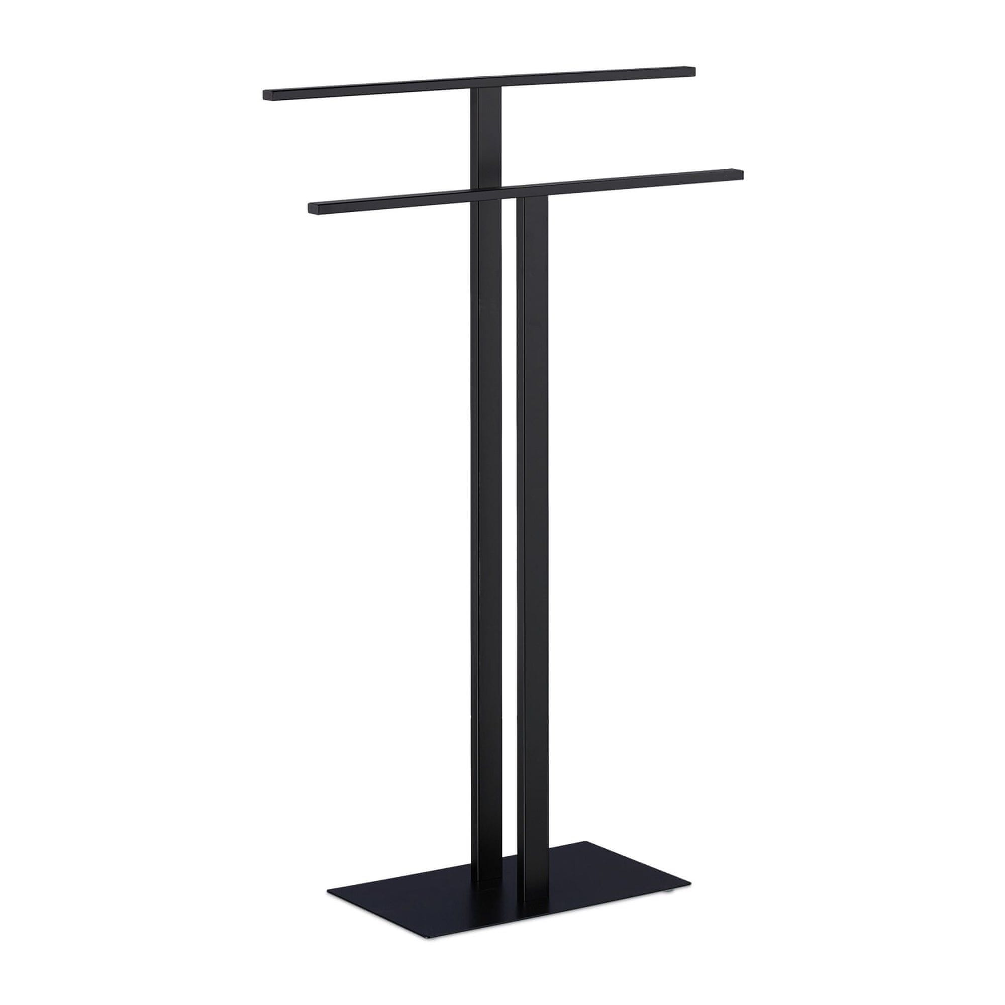 Northix Črno stojalo za brisače z 2 prečkama - samostoječa zasnova