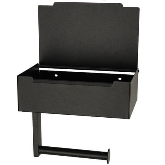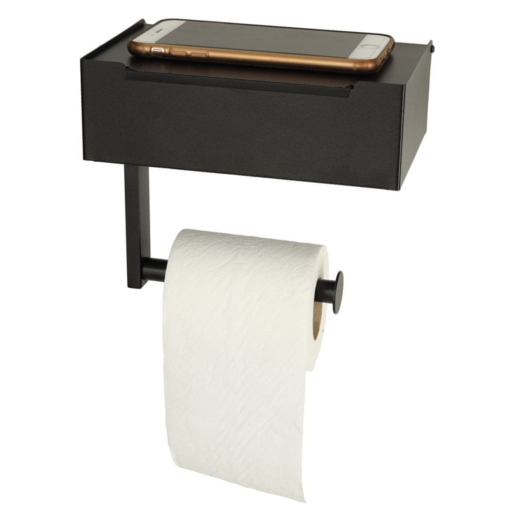 Praktično držalo za toaletni papir z dodatnim prostorom za shranjevanje na primer vlažnih robčkov. Škatlo za shranjevanje lahko uporabite tudi kot polico za osvežilnik zraka ali telefon. Nosilec je v mat črni barvi, odprta stran pa omogoča enostavno menjavo papirja.