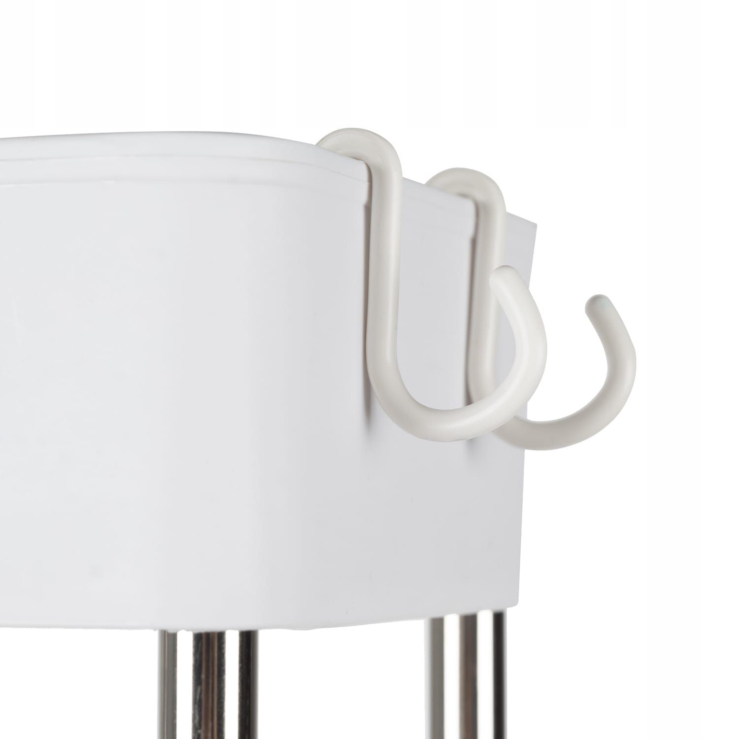 - PRAKTIČNE KAVLJICE - Kopalniški polici so priložene tudi štiri kljukice iz PP materiala , ki jih enostavno pritrdite na robove polic . Te kljukice so idealno mesto za obešanje brisač, gobic, krtač ali drugih manjših kopalniških dodatkov, kar še dodatno poveča funkcionalnost police. Dodatna prednost police so štiri vrtljiva kolesa, ki omogočajo prosto premikanje . Kolesa se vrtijo za 360 stopinj, kar zagotavlja maksimalno mobilnost in omogoča enostavno premikanje police tudi v ozkih kopalniških prostorih. Zahvaljujoč temu lahko polico preprosto premaknete tja, kjer je najbolj potrebna, ne da bi jo morali dvigniti.