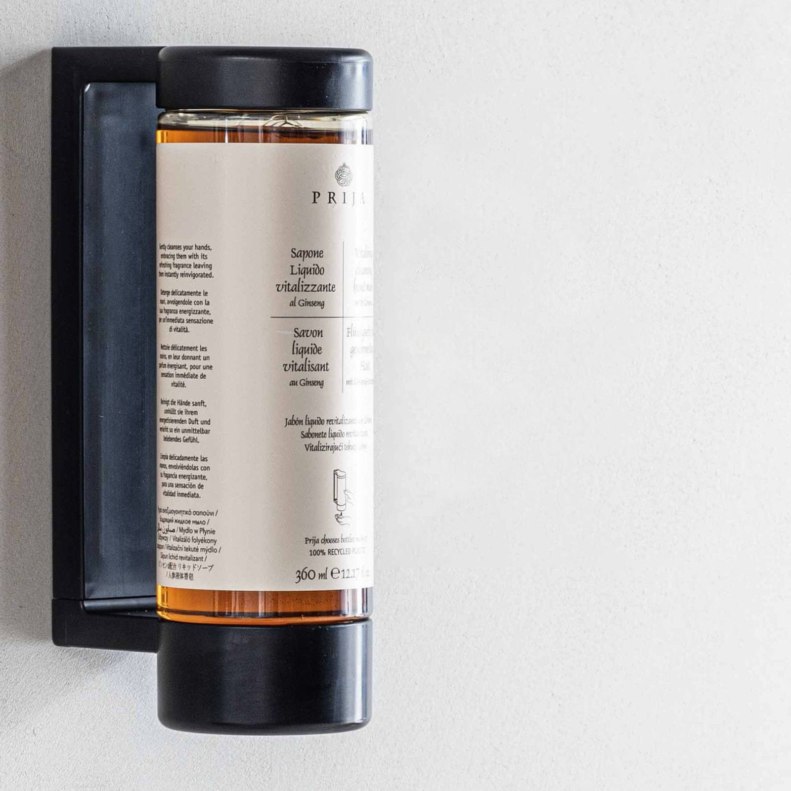Držalo za stekleničko tekočega mila/gela s prostornino 360 ml je elegantna in praktična rešitev za namestitev kozmetike na steno.