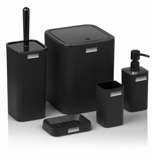 Dajte svoji kopalnici novo dimenzijo elegance z našim popolnim kopalniškim kompletom, ki ga sestavlja pet osnovnih kosov. Ta komplet, zasnovan z mislijo na funkcionalnost in slog, ne bo le poenostavil vsakodnevnih opravil, ampak bo tudi povečal prostor vaše kopalnice. Set vsebuje: Podstavek za milo – praktičen in eleganten prostor za vaše najljubše milo, ki vam bo vedno na dosegu roke. Držalo za zobne ščetke – popoln način za higiensko shranjevanje zobnih ščetk, ki ohranja vaš prostor čist. Dozirnik za milo – priročen in estetsko prijeten način za shranjevanje tekočega mila, ki zagotavlja enostavno in čisto doziranje. Straniščna ščetka – nepogrešljiv kopalniški pripomoček, ki ne le služi svojemu namenu, ampak tudi izgleda elegantno in urejeno. Koš za smeti – diskreten, a funkcionalen, ki zagotavlja čisto in urejeno kopalnico. Vsak kos v tem kompletu je bil skrbno zasnovan tako, da ustreza različnim slogom.