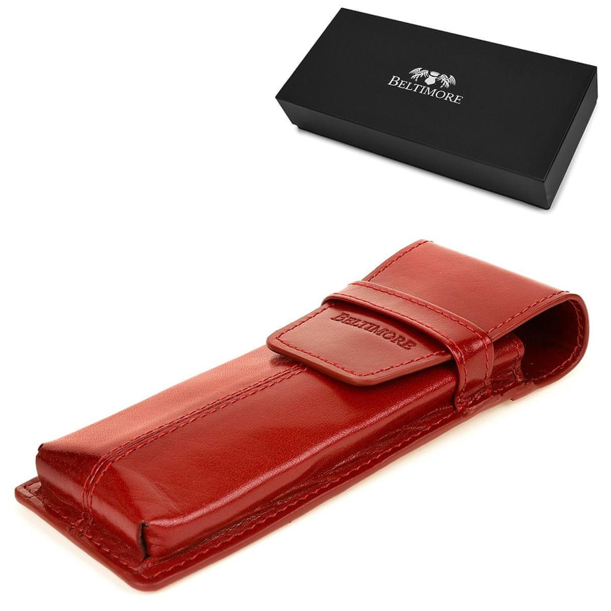Čudovita usnjena torbica za pisalo v rdeči barvi znamke Beltimore®. Etui je namenjen tako ženskam kot moškim.