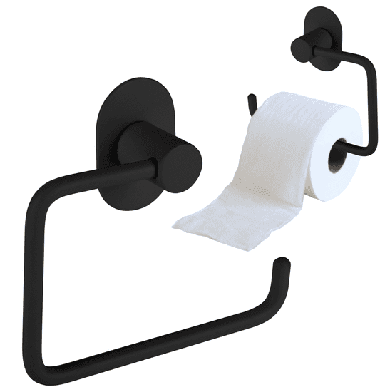 shumee Držalo za toaletni papir za WC, stensko, samolepilno, na vijak, črno