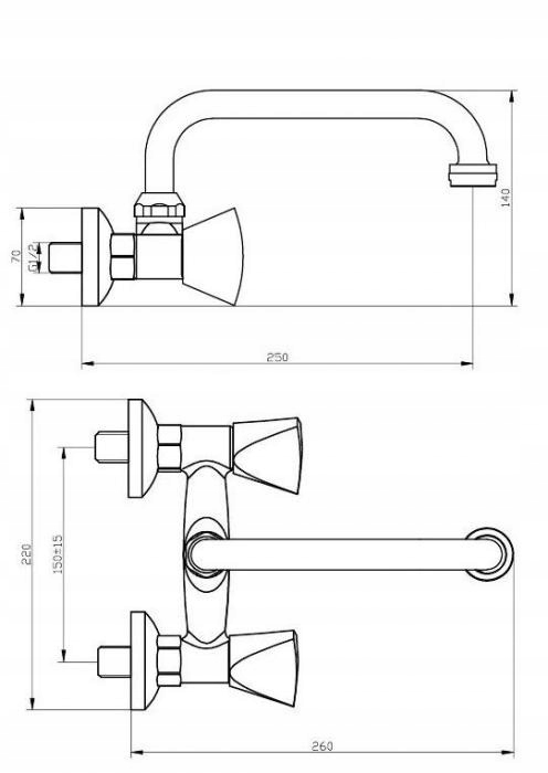 Linija standardnih kuhinjskih in kopalniških pip. Izdelana iz masivne medenine s kromiranim zaključkom, ima ločene gobaste glave za toplo in hladno vodo z vrtljivim izlivom. Zasnova zagotavlja vzdržljivost in kakovost za prihodnja leta. Ta ekonomična linija standardnih pip ponuja praktične funkcije ter oblike in površine, ki jih je enostavno čistiti. Stenske pipe so opremljene z ekscentričnimi priključki G 1/2.