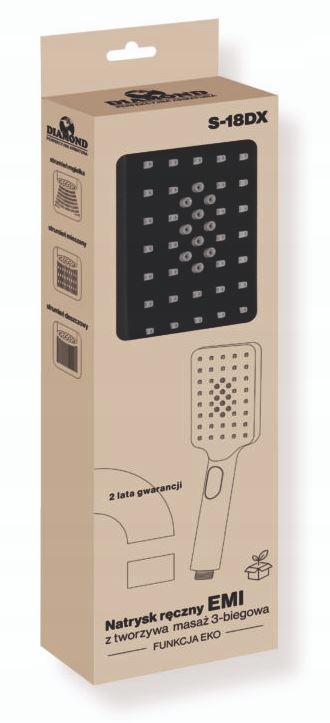 Ročne tuše DIAMOND, izdelane iz kromirane plastike, se odlikujejo po enostavnih oblikah in površinah za čiščenje. Večhitrostno stikalo omogoča nastavitev moči curka od nežnega do močne masažne funkcije. Na voljo so v različnih oblikah in velikostih, zasnovane za pipe za kopalne kadi in tuše ter za tuš komplete.