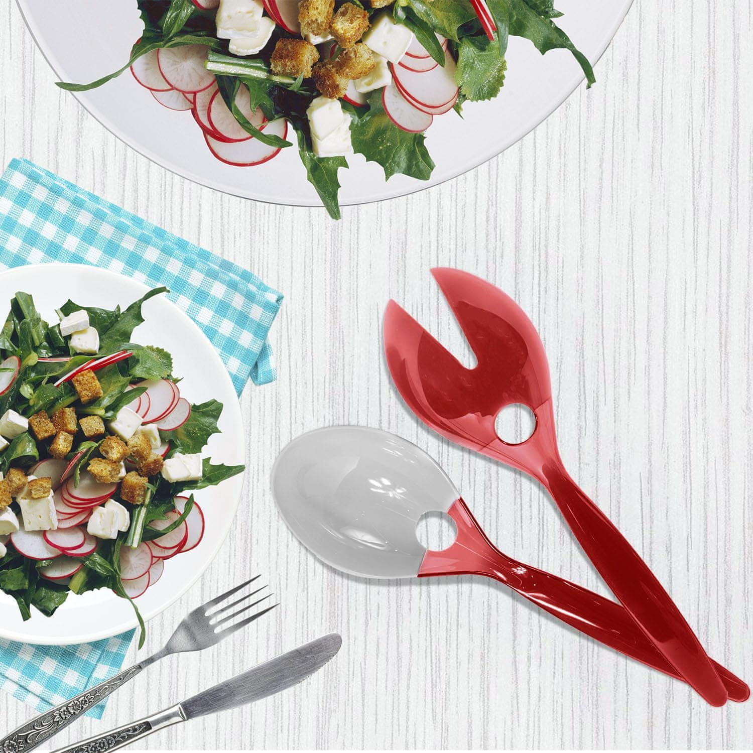 Ta set dveh žličk za solato je popoln set za enostavno serviranje solate. Izdelane iz umetne mase, ki je enostavna za čiščenje, vpadljiva barva žlic doda sodoben pridih serviranju jedi. Primerno za pomivalni stroj.