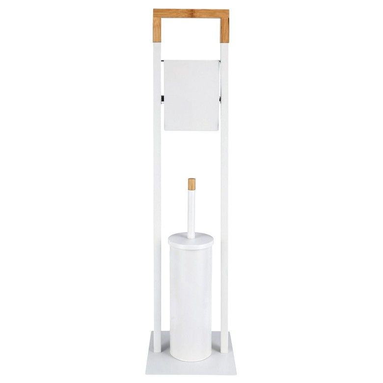 Stojalo za toaletni papir z WC ščetko tvori harmonično kompozicijo. Stojalo ima tudi lesene elemente, ki dajejo naraven in topel videz. WC ščetka ima udoben ročaj in učinkovite ščetine, ki zagotavljajo temeljito čiščenje.