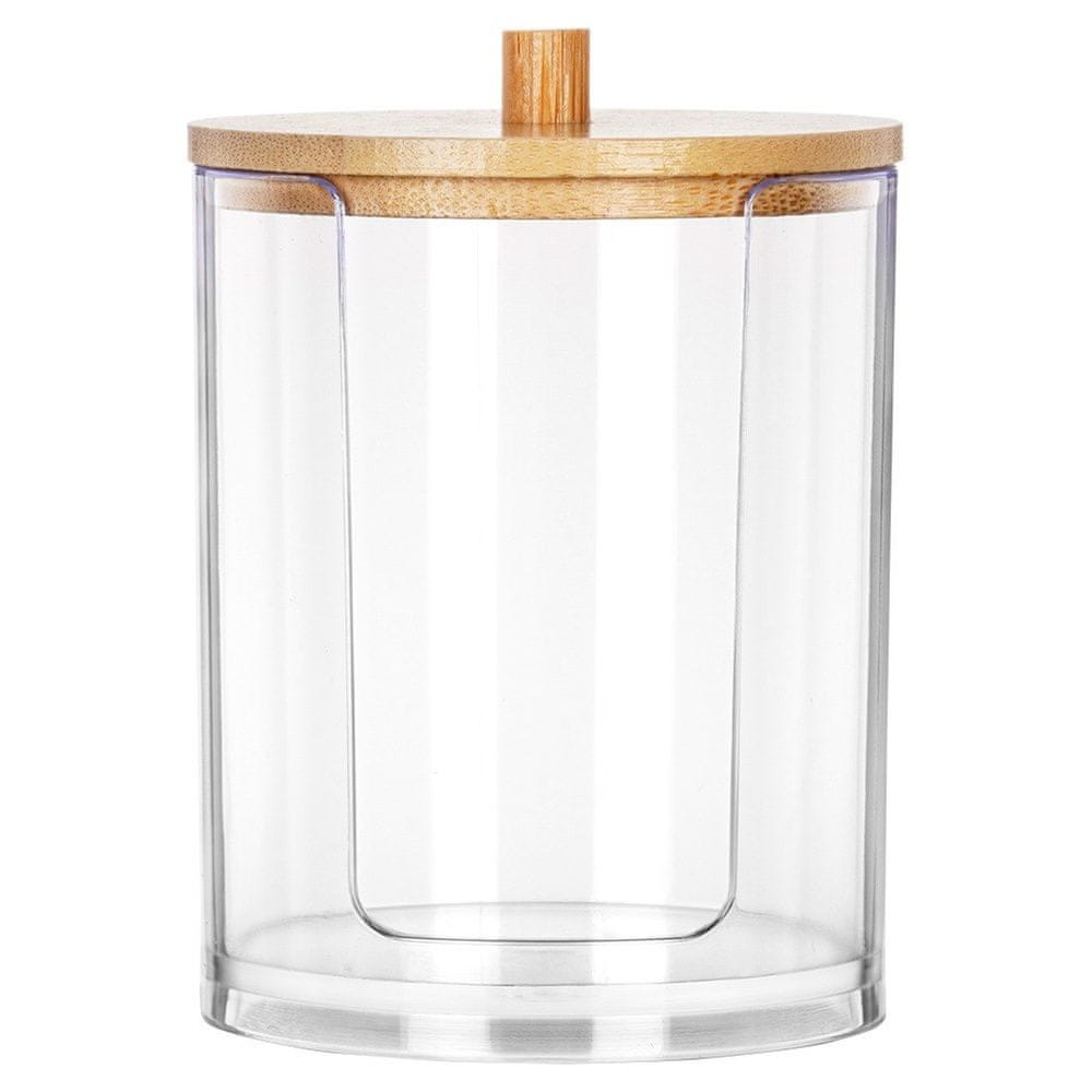 Ta posodica za vatirane palčke je praktičen dodatek k vaši kopalnici. Prozorna barva vam omogoča, da vidite, koliko vatiranih palčk je še ostalo. Bambusov pokrov ščiti vatirane palčke pred prahom in doda eleganten pridih. Je kompaktna, a hkrati sprejme veliko vatiranih palčk, polnjenje pa je hitro in priročno. Originalni izdelek Vilde. Izdelano v skladu z evropskimi standardi.