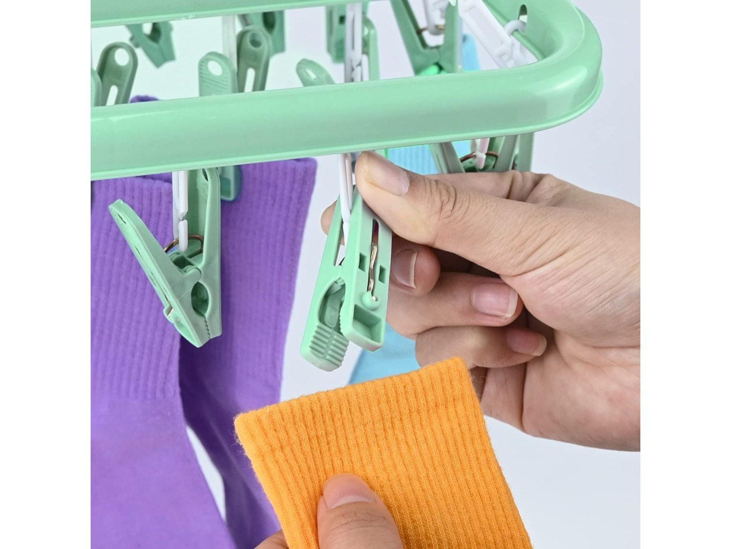 shumee Sušilnik, obešalnik za nogavice, spodnje perilo, zložljiv, sponke, kljukice, praktičen, pistacija