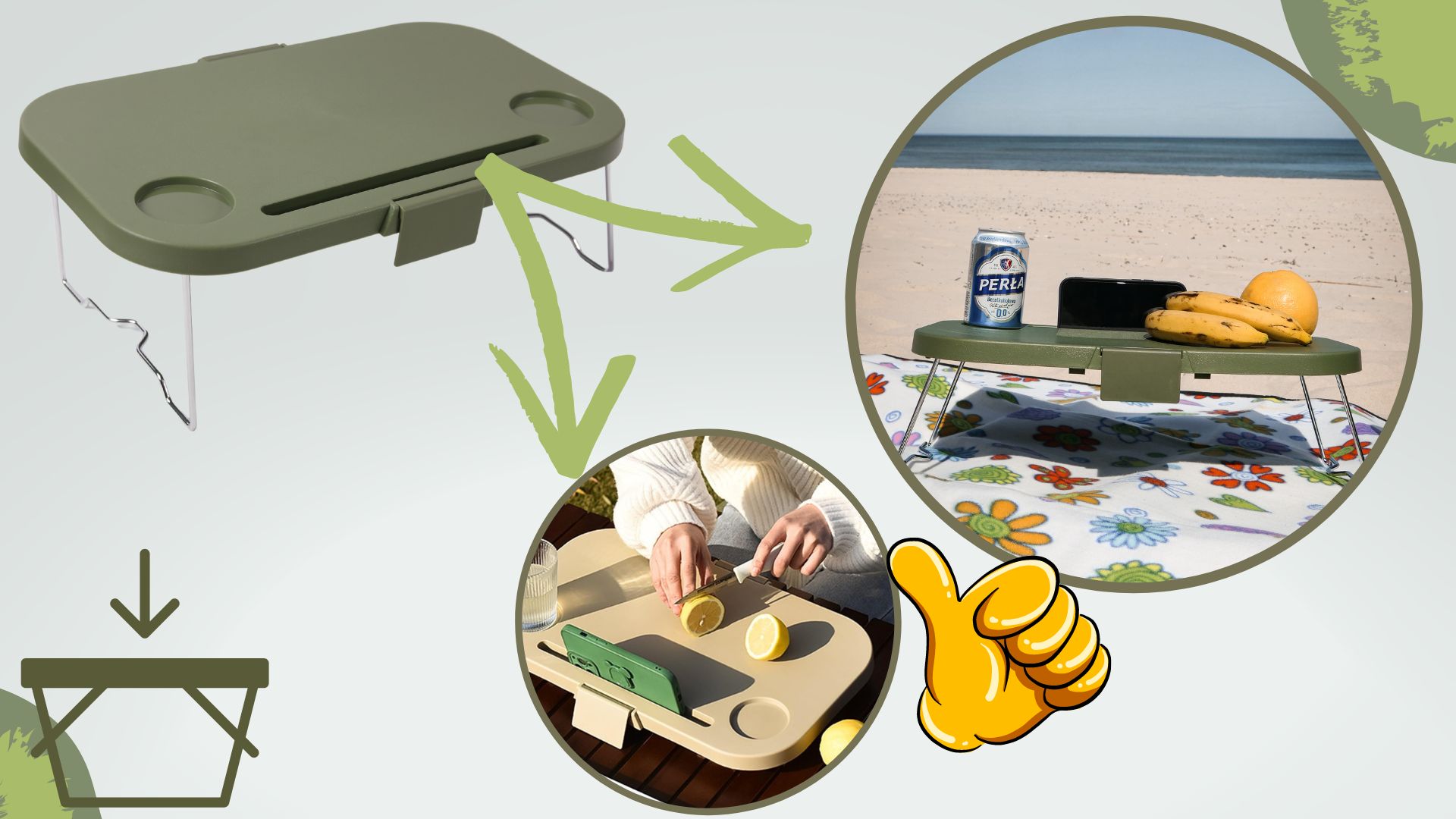 • ✅3v1– košara se lahko uporablja kot nosilna košara, kot kamping miza ali kot deska za rezanje
