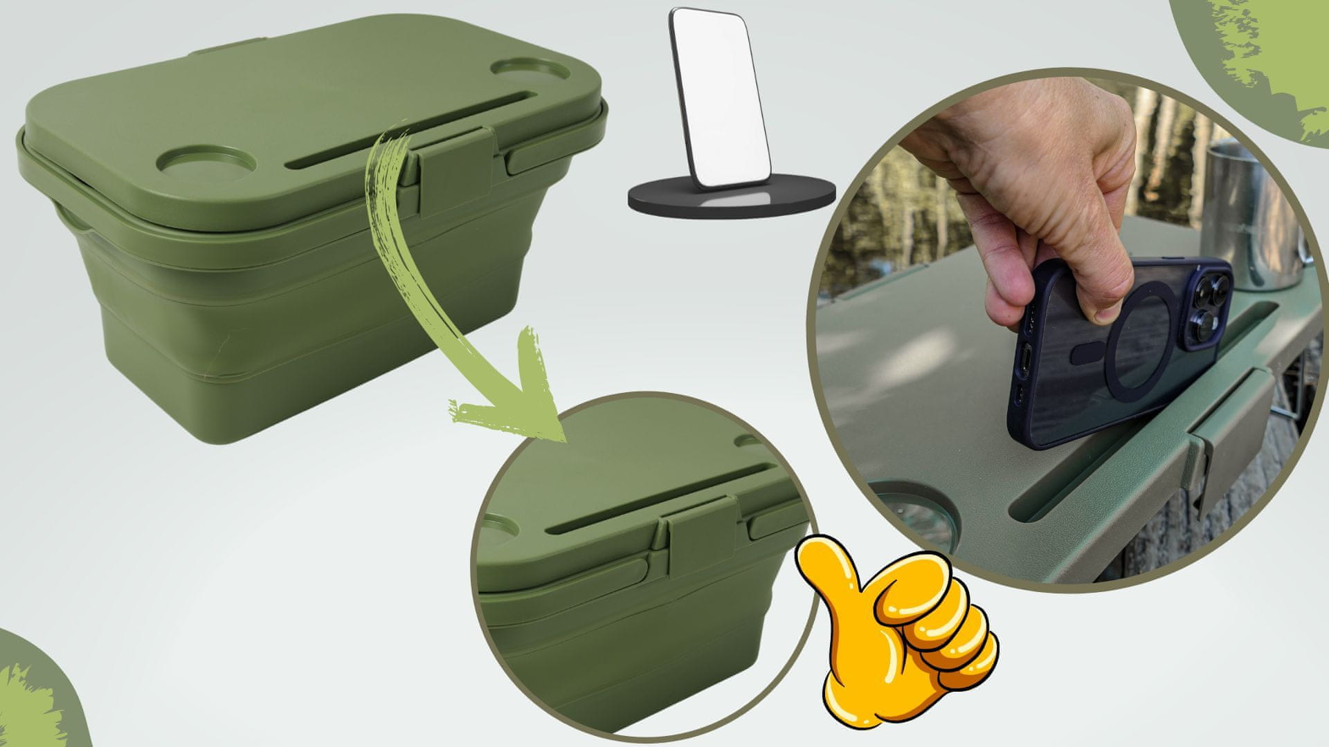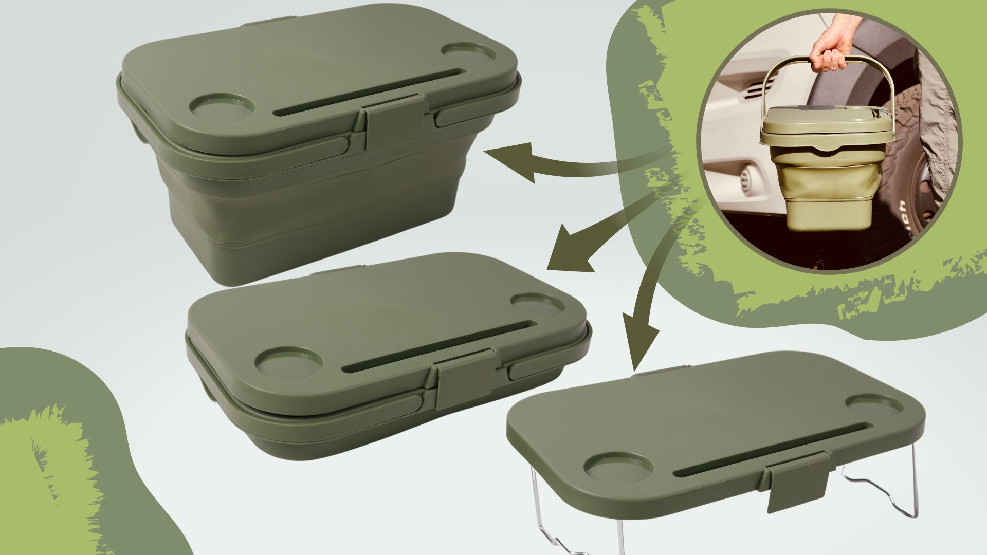 • ✅ miza za kampiranje – pokrov ima 2 zložljivi, trdni kovinski nogi, tako da ga lahko preprosto spremenite v mizo za kampiranje