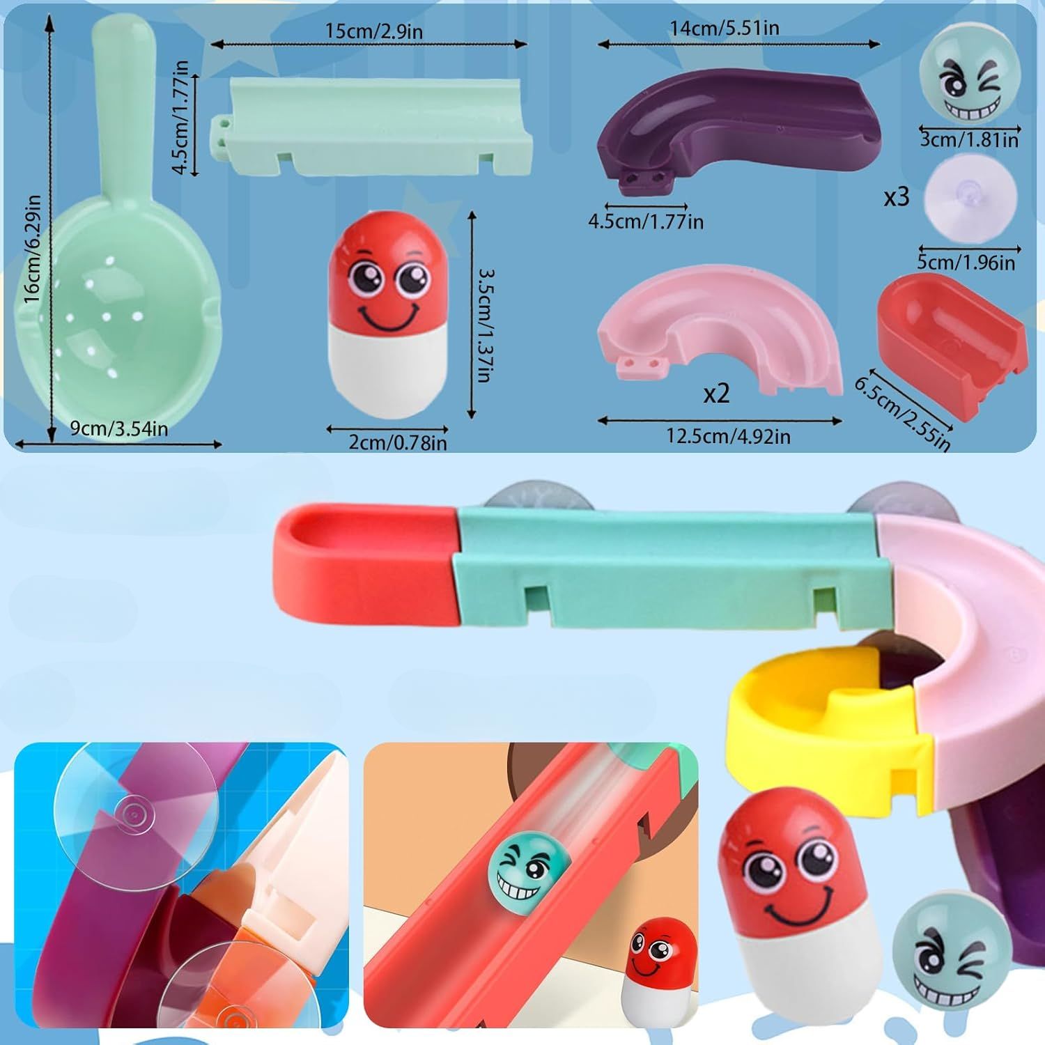 Opis izdelka: Odkrijte čarobni svet zabave med kopanjem s kompletom igrač za kad YOUYIKE. Ta 14-delni komplet vključuje vse, kar potrebujete, da bo kopanje za vašega otroka nepozabna izkušnja. Te igrače so izdelane iz varnega in nestrupenega materiala ABS ter ne vsebujejo BPA, ftalatov in svinca, kar zagotavlja varno igro. Komplet vključuje interaktivno igračo za kopanje v obliki opice, komplet povezovalnih tirnic s priseski, raco, žlico, žogo in še več. Otroci se bodo neskončno zabavali ob sestavljanju toboganov, spuščanju žogic in opazovanju, kako hitro plavajo v kadi. Te igrače pomagajo razvijati koordinacijo rok in oči ter praktične spretnosti ter spodbujajo interakcijo med dojenčkom in starši. Sestavljanje je enostavno – priseske preprosto pritrdite na katero koli gladko površino in končali ste. Kopanje še nikoli ni bilo tako razburljivo!