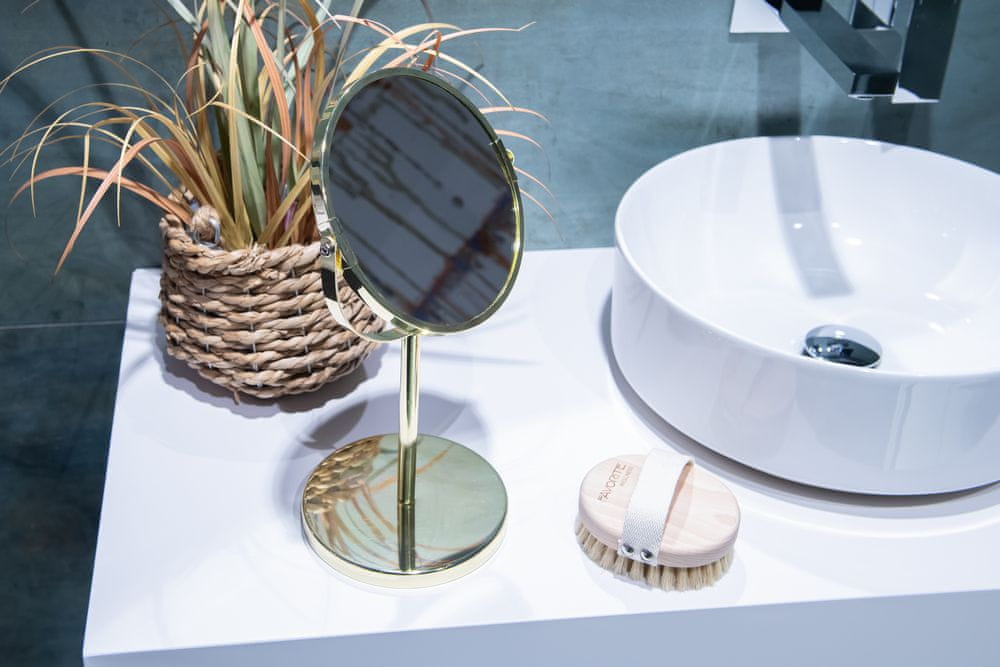 Zlato notranje kozmetično ogledalo s štirikolesnim pogonom na stojalu