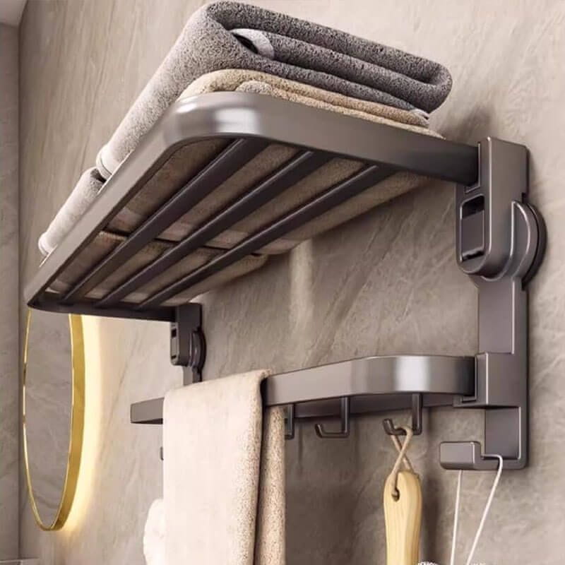 NOVO! Vnesite red v kopalnico, ne da bi zasedali prostor! Z našo zložljivo kopalniško stensko polico BathLux zagotovite eleganco in red. Ta stenski nosilec je izdelan iz trpežnega aluminija in je nepogrešljiv dodatek za vašo kopalnico, spalnico ali kuhinjo! Celoten opis