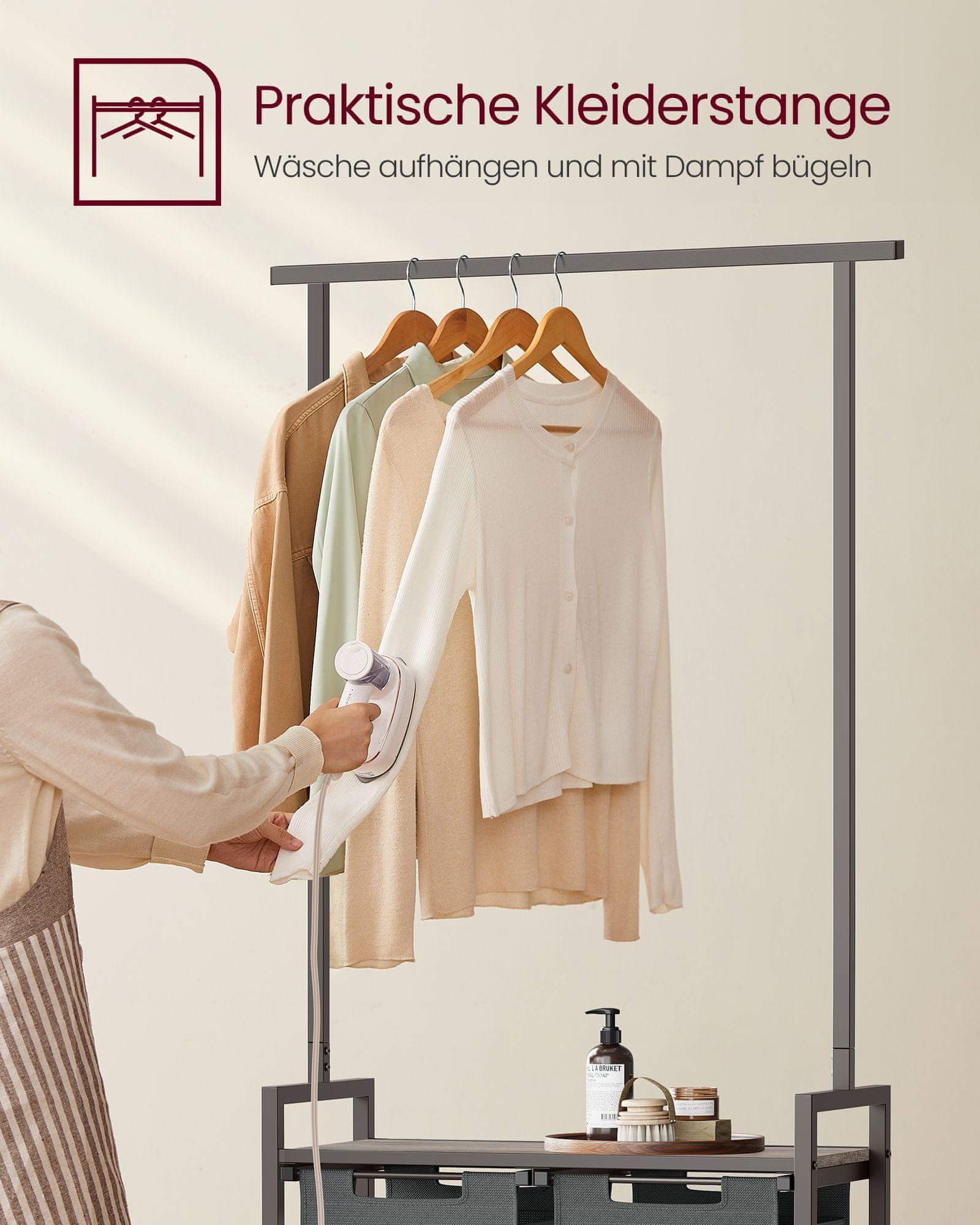 Ta košara za perilo je zasnovana za poenostavitev vaše rutine pranja perila s praktičnim dvodelnim organizatorjem ki omogoča enostavno ločevanje oblačil za vso družino. Integrirana polica nudi dodatni prostor za shranjevanje ali zlaganje medtem ko večnamenska obešalna palica omogoča priročno obešanje in sušenje oblačil. Z robustno konstrukcijo in odstranljivimi vodoodbojnimi vložki je ta košara za perilo trpežna in enostavna za vzdrževanje.