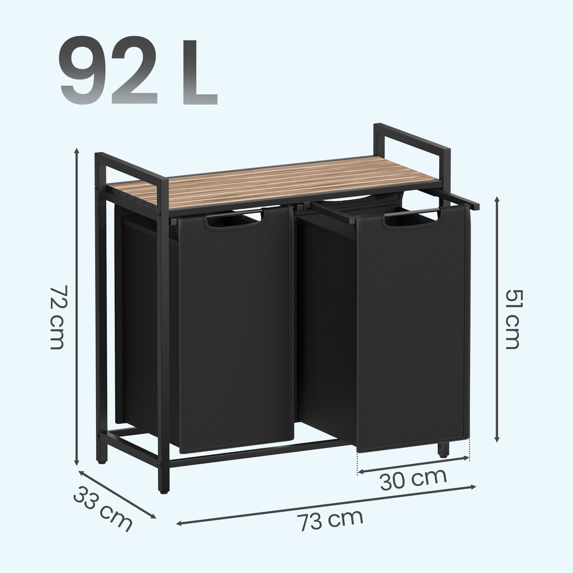 Songmics Koš za perilo, 2-prekatna košara za perilo, 73x33x72 cm, črna