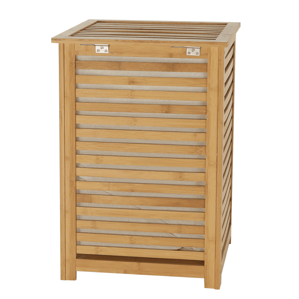 KONDELA Košara za perilo, lakiran bambus/bež, KOŠARA
