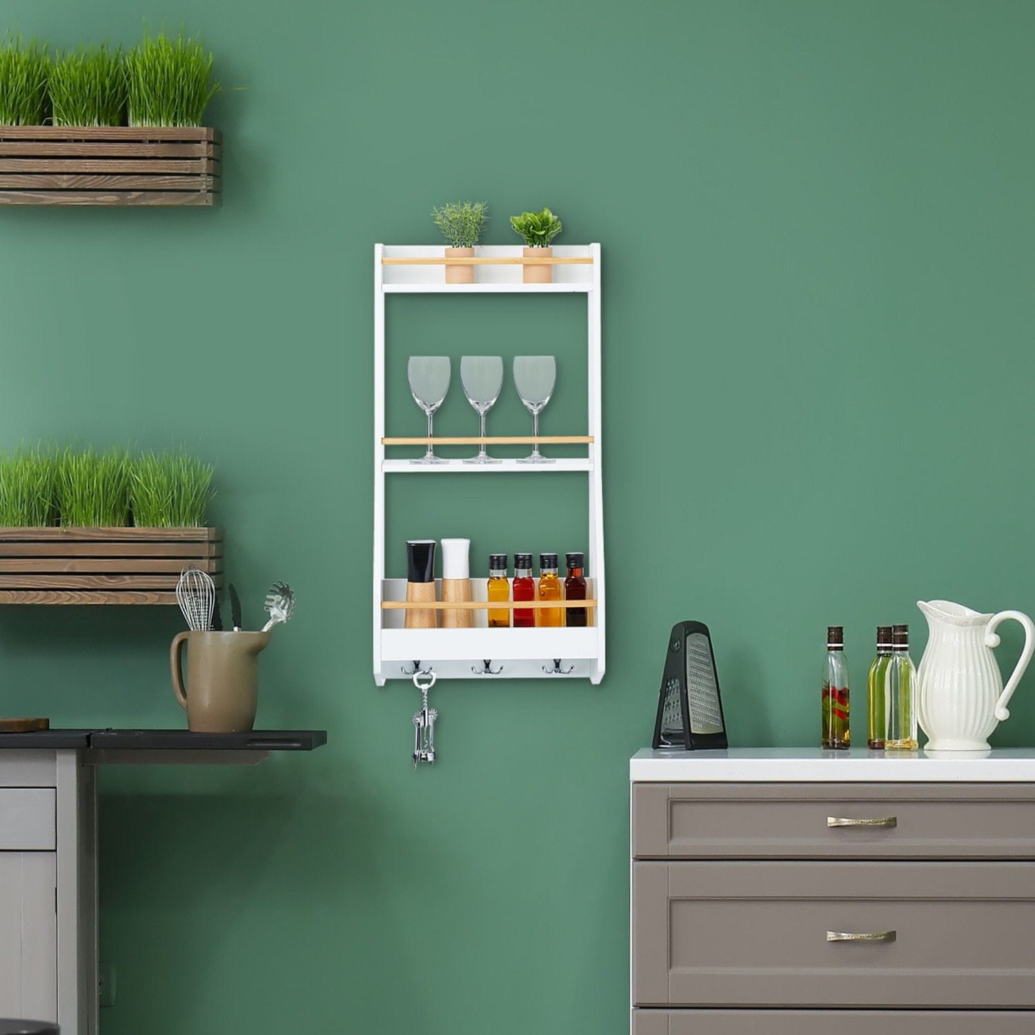Plavajoča polica s kavlji izboljša shranjevanje brez zavzemanja prostora, kar je popolno za sodobne domove. Njegove tri police in šest kavljev ponujajo vsestransko organizacijo kopalnic ali kuhinj.