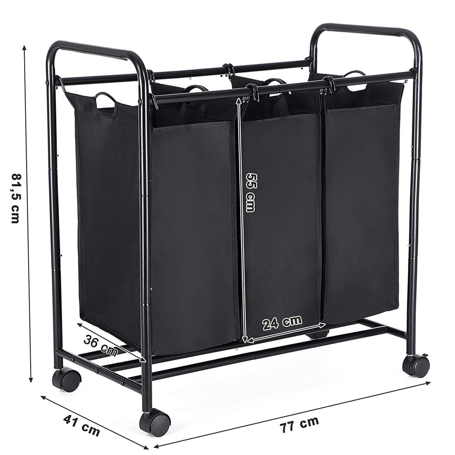 VASAGLE Črna košara za perilo na kolesih LSF003B
