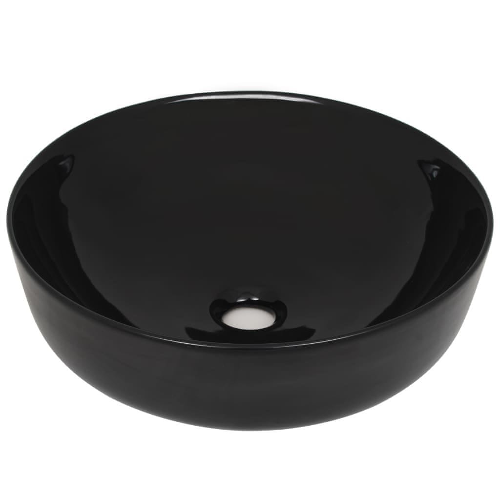Vidaxl Keramični umivalnik okrogel črne barve 41,5x13,5 cm