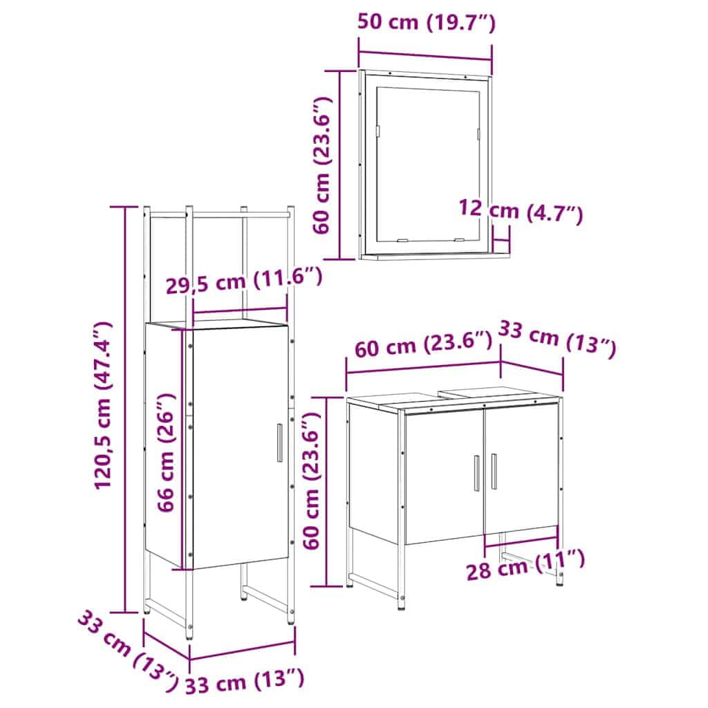 Vidaxl Komplet pohištva za kopalnico 3 pcs Rjava Konstruiran les
