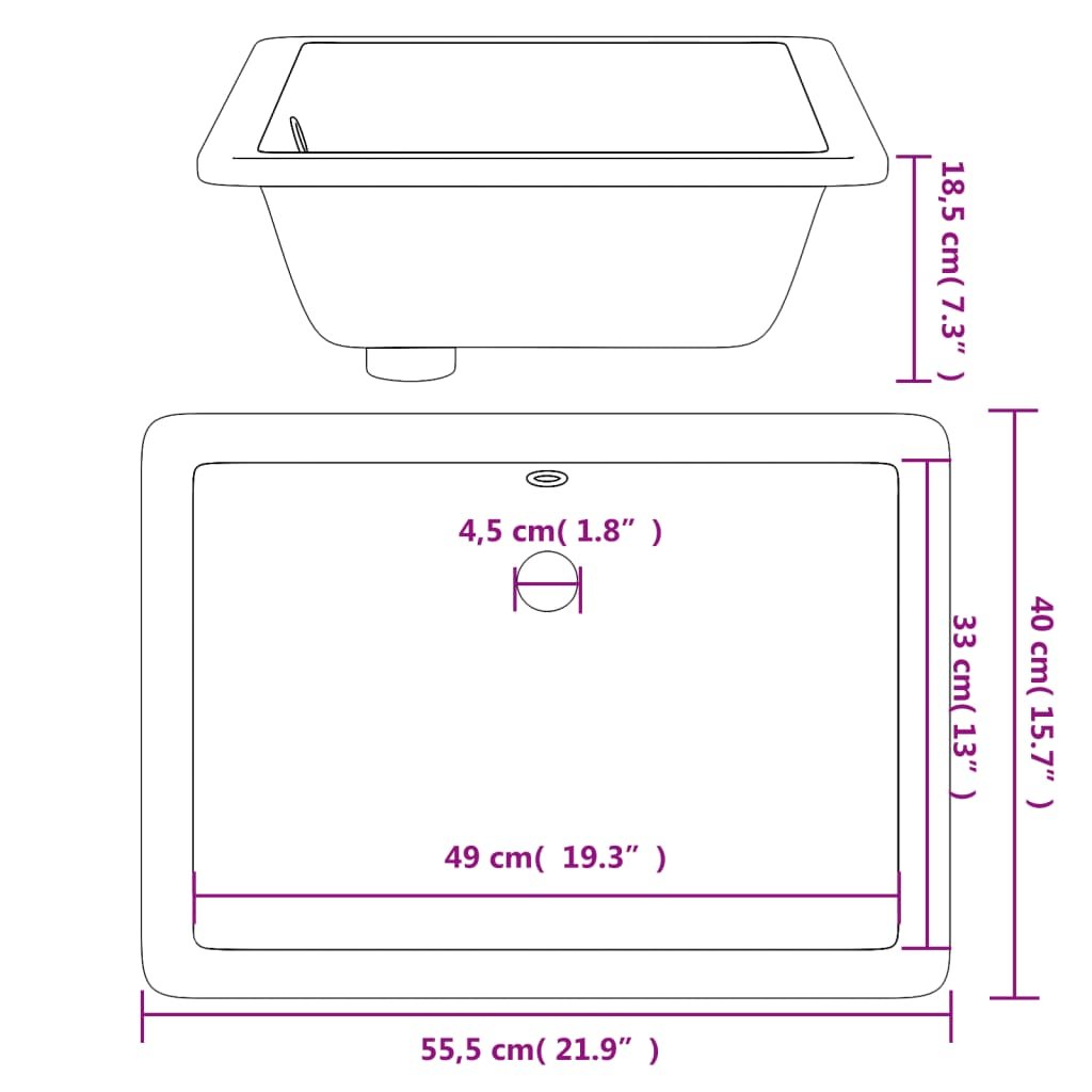 Vidaxl Kopalniški umivalnik bel 55,5x40x18,5cm pravokoten keramičen