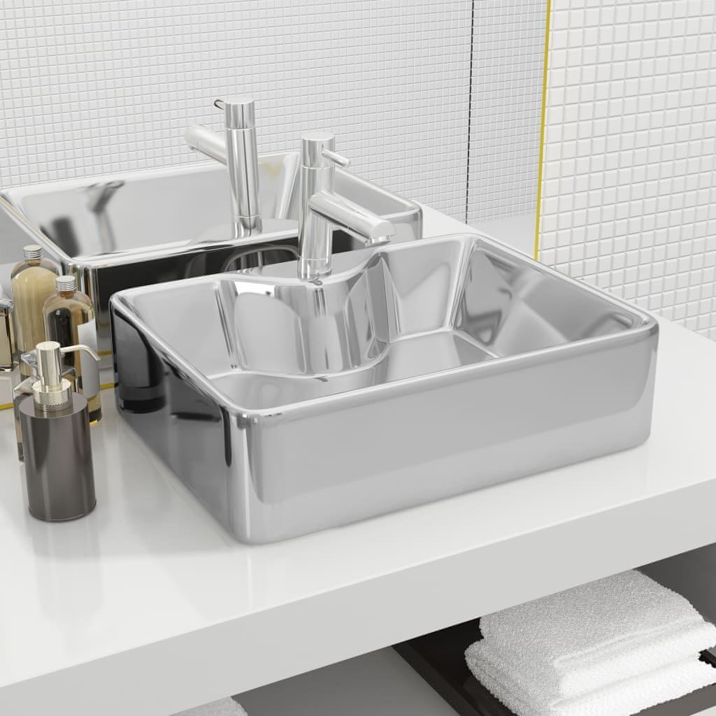 Vidaxl Umivalnik z odprtino za pipo 48x37x13,5 cm keramičen srebrn