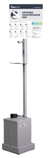 Avtomatski razpršilnik z IR senzorjem za razkuževanje. Rezervoar, ki ga je mogoče ponovno napolniti, vsebuje do 5 litrov sanitarne snovi. Prilagoditev količine odmerka (glede na gostoto uporabljenega razkuževalnega sredstva) Napajanje preko polnile baterija ali adapterja. Celoten opis