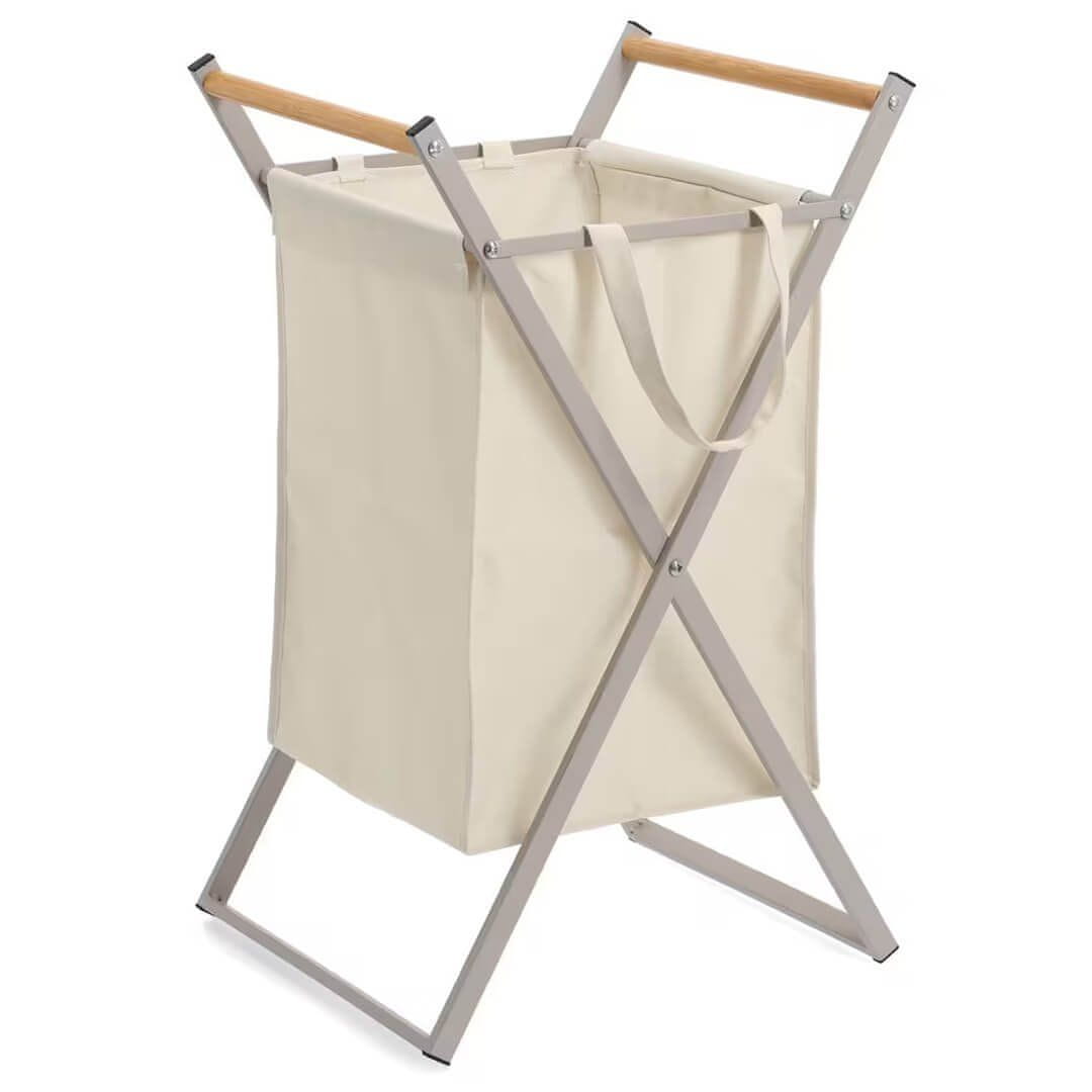 Zeller Zložljiva košara za perilo 36,5x40xh67cm / krem / kovina, poliester, les