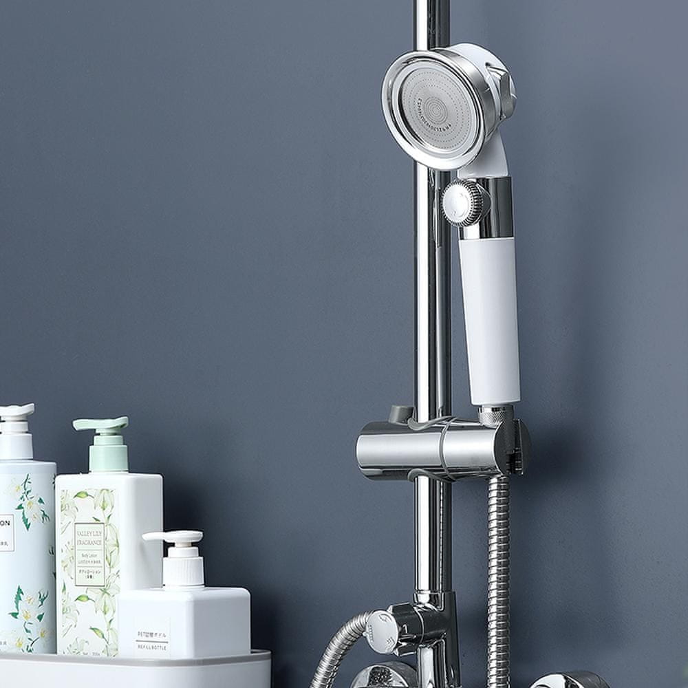Pršna šoba z lepim dizajnom v beli in srebrni barvi ter tremi različnimi nastavitvami pretoka vode. Priložena cev za prho in nosilec z vijaki in čepi. Celoten opis
