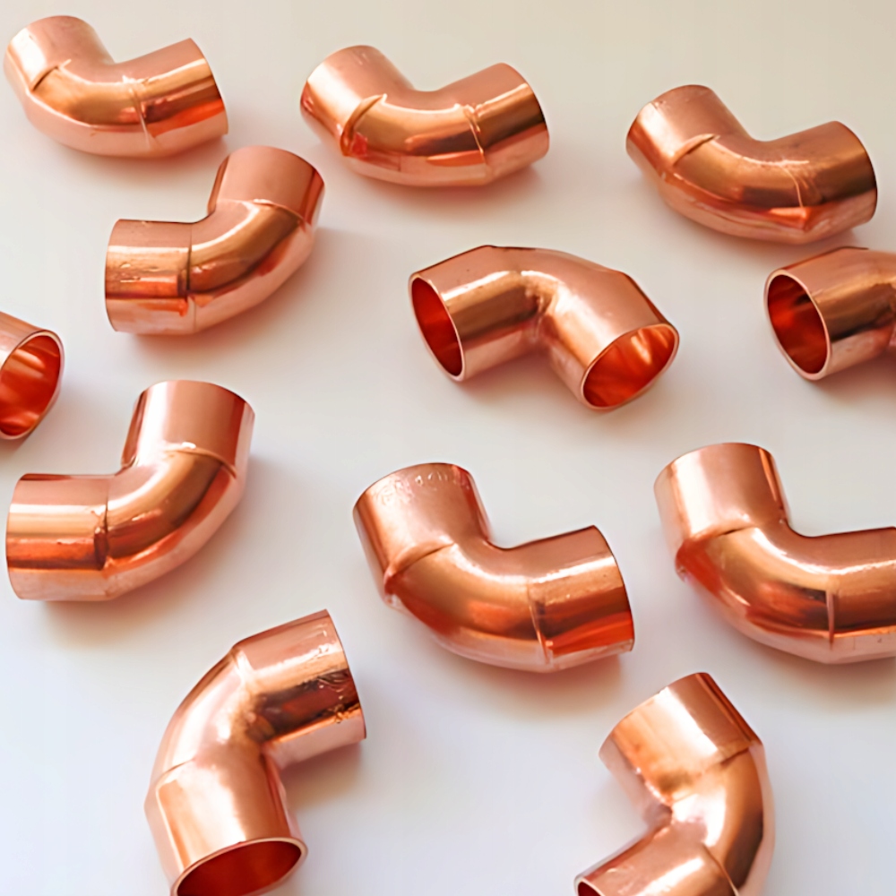 Koleno izdelano iz bakra Cu-DHP odlikuje ga visoka odpornost proti koroziji in mehanska trdnost, kar zagotavlja dolgoročno zanesljivost.