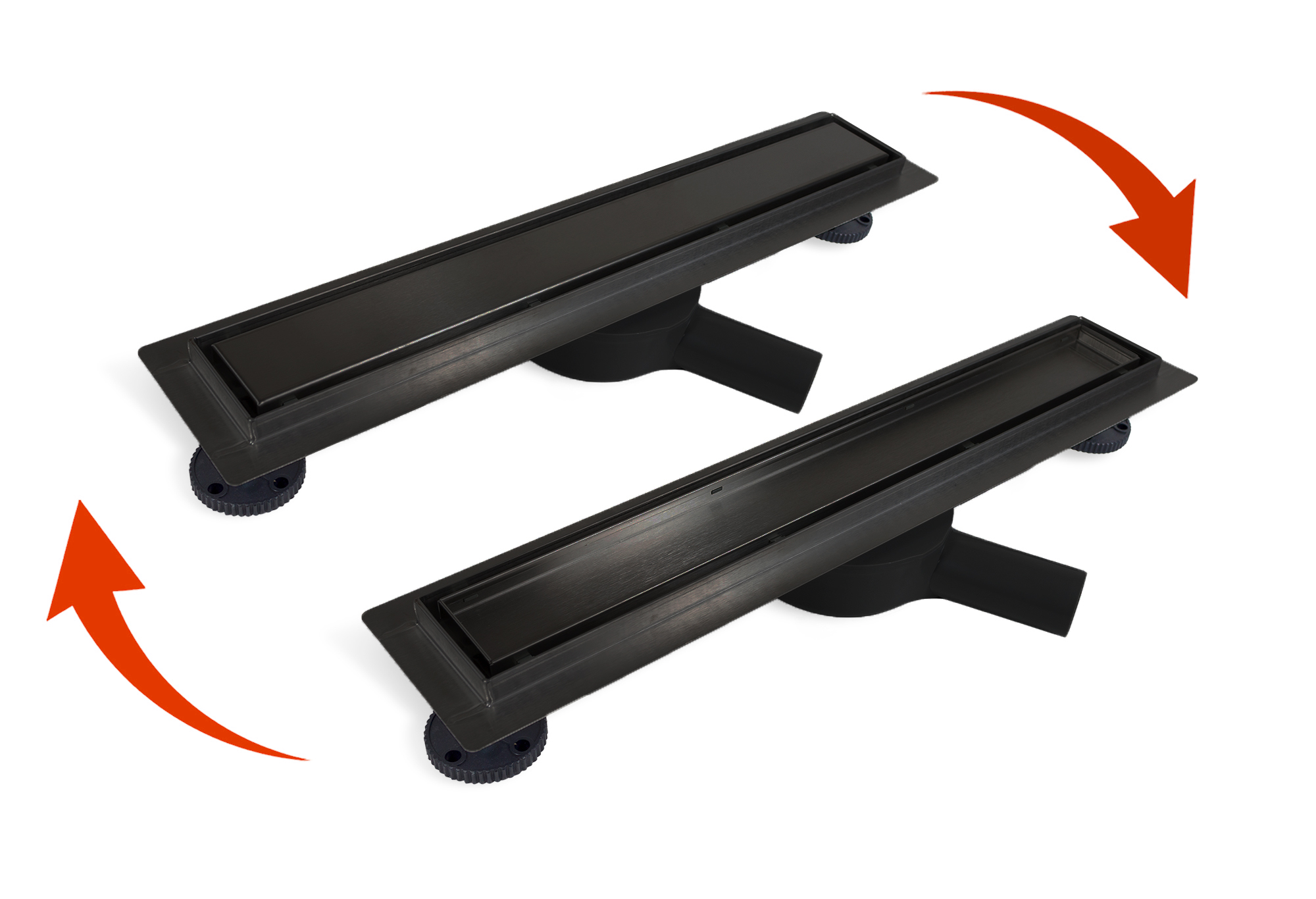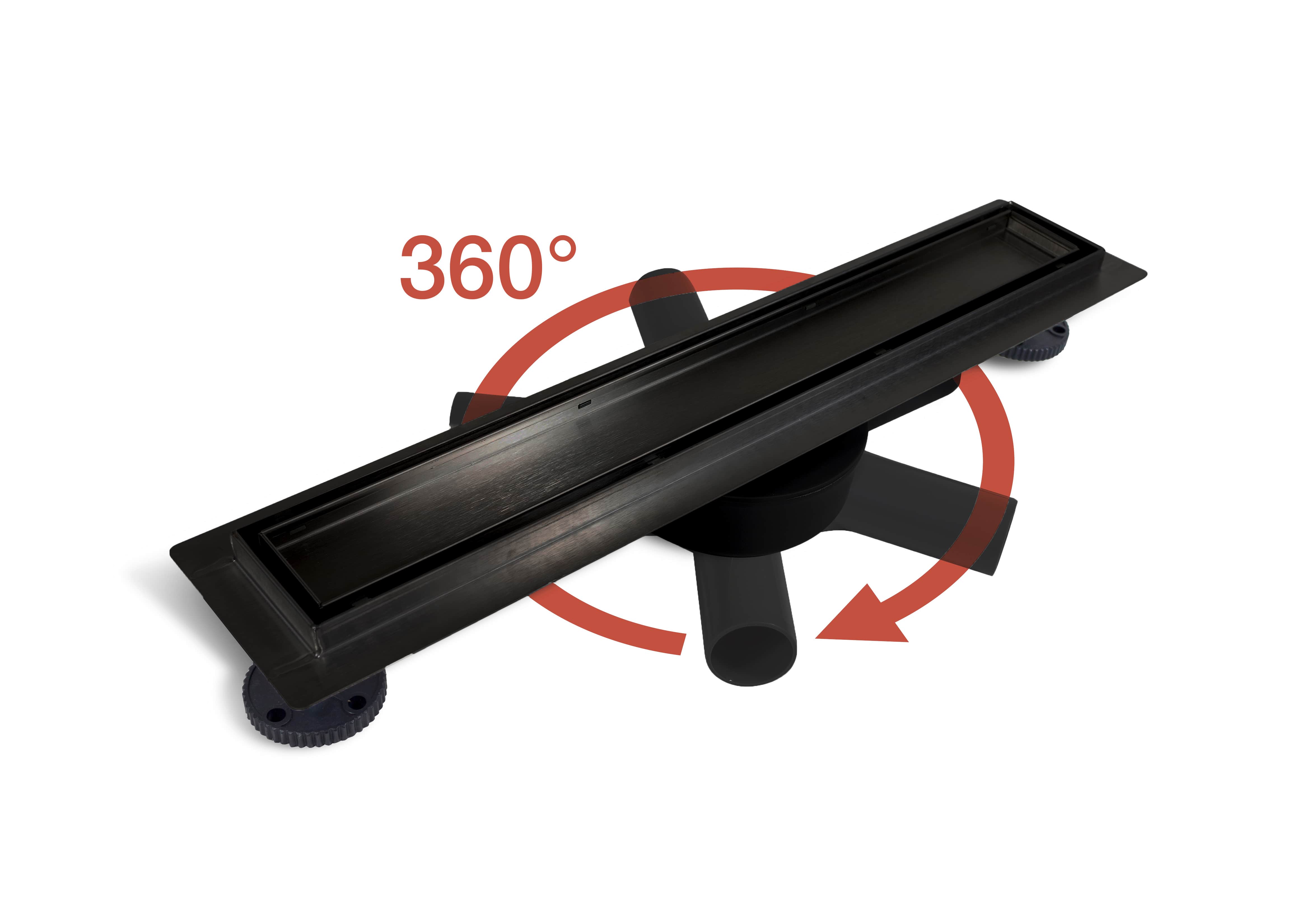 BASIC 360 Drain Black Linearni odtok z vrtljivim sifonom črne barve 90 cm Celoten opis
