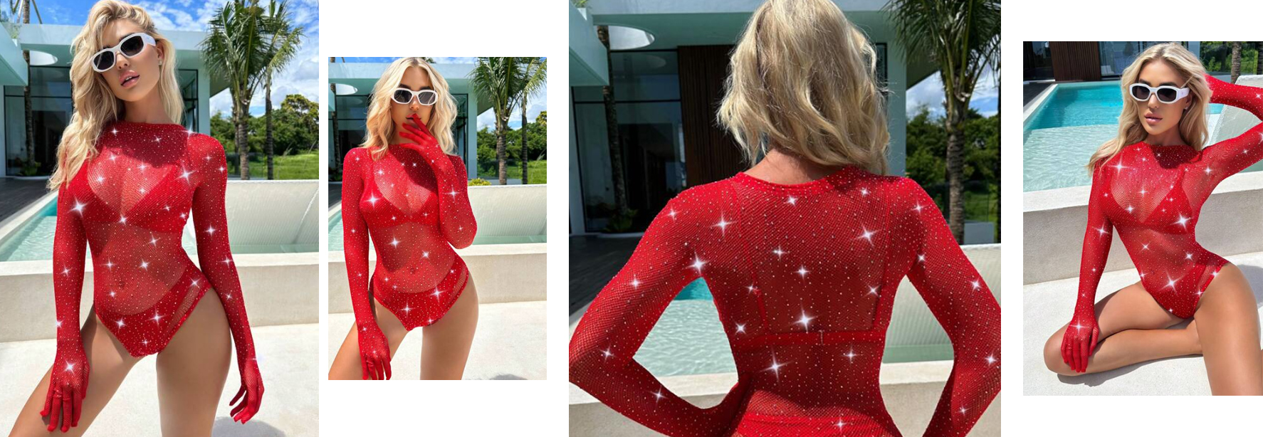 shumee BODYSTOCKING BODI EROTIČNA OBLEKA MODNI KOMPLET SEKSI ROKAVICE ROKAVCI Z RDEČIM CIRKONOM 60276