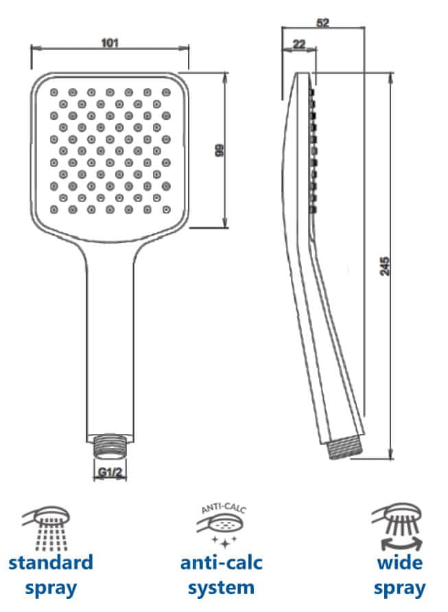 Univerzalna ročica za tuš, idealna za moderne kopalnice. Tehnični podatki: – Oblika: kvadratna; – Mat črna barva.