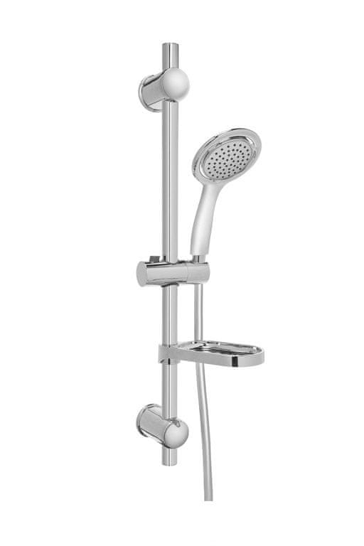 Komplet za tuširanje je sestavljen iz osnovne ročne glave, cevi za tuš in posode za milo.