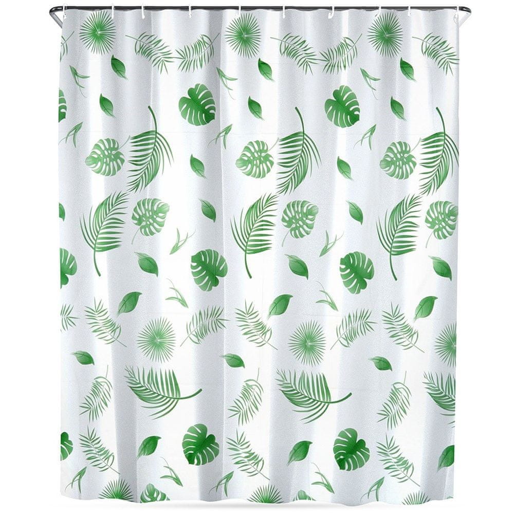Visokokakovosten material PEVA – Zavesa je izdelana iz okolju prijaznega materiala PEVA, ki ne vsebuje škodljivih kemikalij, zaradi česar je varen za zdravje in okolje. Zavesa je bele barve z zelenim rastlinskim motivom. PEVA folija je okolju prijazna, saj je popolnoma biorazgradljiva. Kavlji iz bele plastike.
