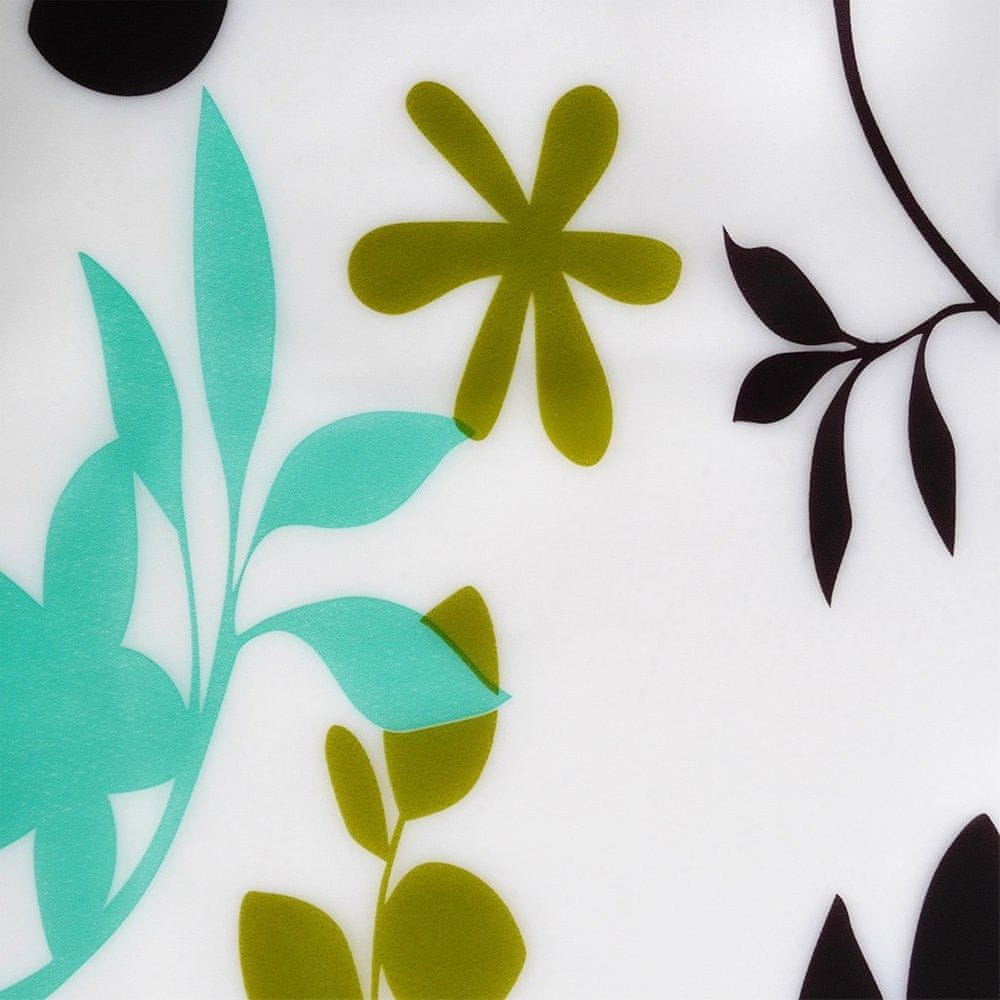 Visokokakovosten material PEVA – Zavesa je izdelana iz okolju prijaznega materiala PEVA, ki ne vsebuje škodljivih kemikalij, zaradi česar je varen za zdravje in okolje. Zavesa je prozorna z motivom rastlin in ptic. PEVA folija je okolju prijazna, saj je popolnoma biorazgradljiva. Kavlji iz bele plastike.
